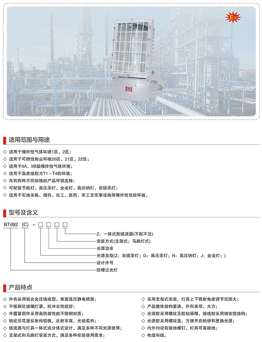 当前位置: 首页 > 产品中心 > 厂用防爆灯具系列 > BTd92(C)系列防爆泛光灯(IIB)